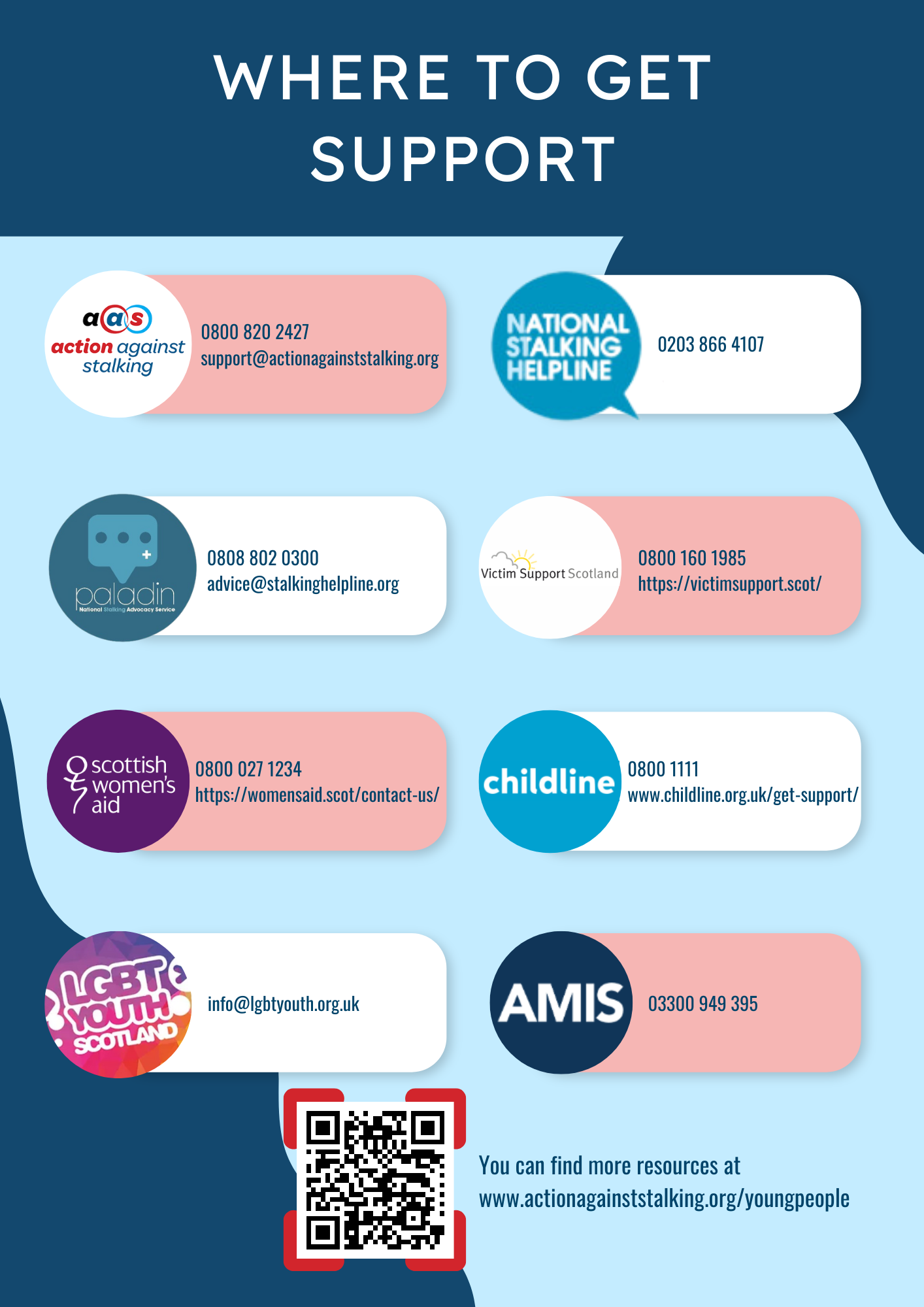 via Action Against Stalking or other relevant support services.